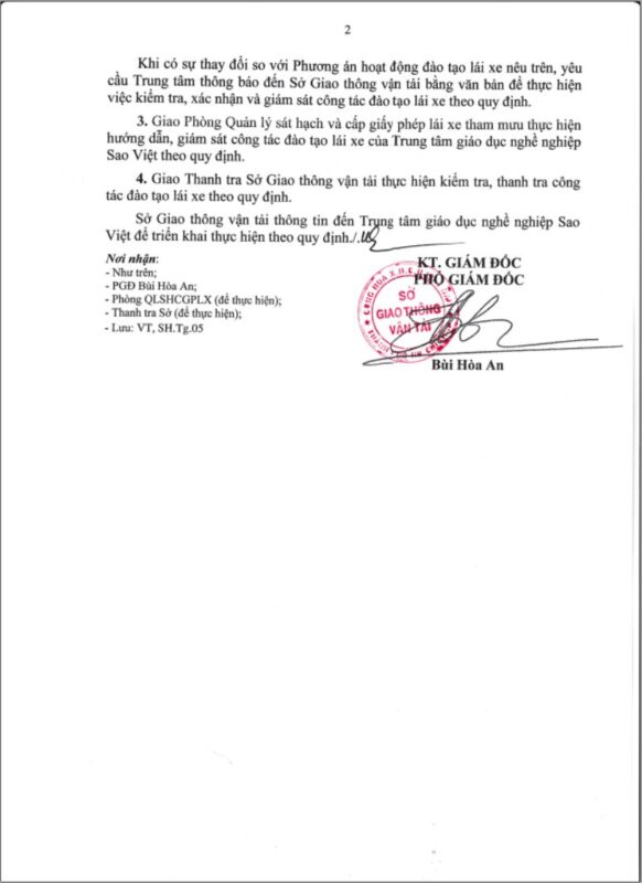 Trung tâm Giáo dục nghề nghiệp Sao Việt được Sở Giao thông vận tải Thành phố Hồ Chí Minh xác nhận Phương án hoạt động đào tạo lái xe hạng A1, A theo văn bản số 2319/SGTVT-SH ngày 27 tháng 02 năm 2025